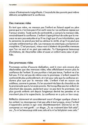 confiance de l’enfant. Si une punition n’est pas tenue, l’enfant ne s’en