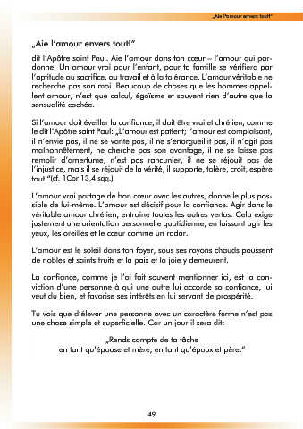 Si l’amour doit éveiller la confiance, il doit être vrai et chrétien, comme